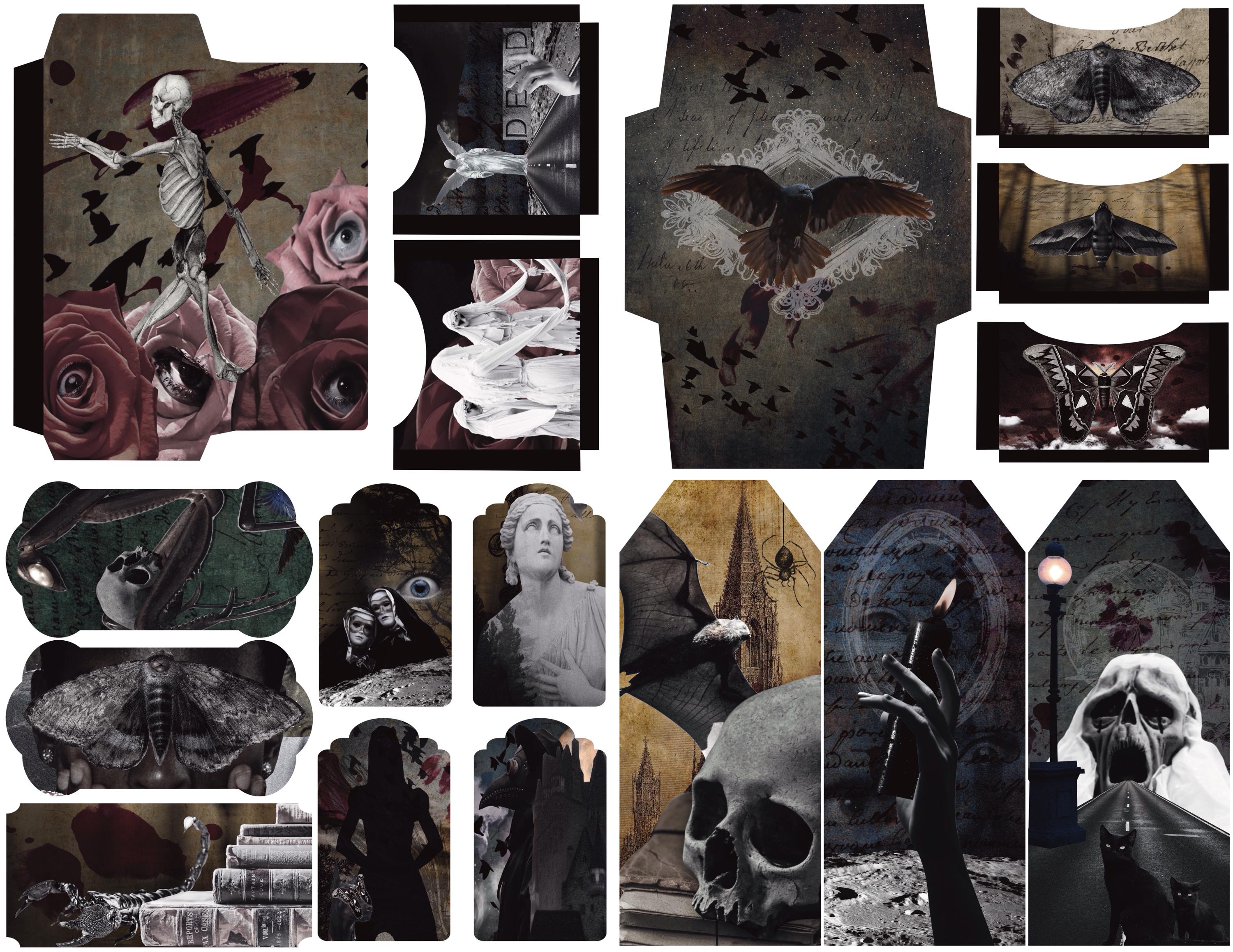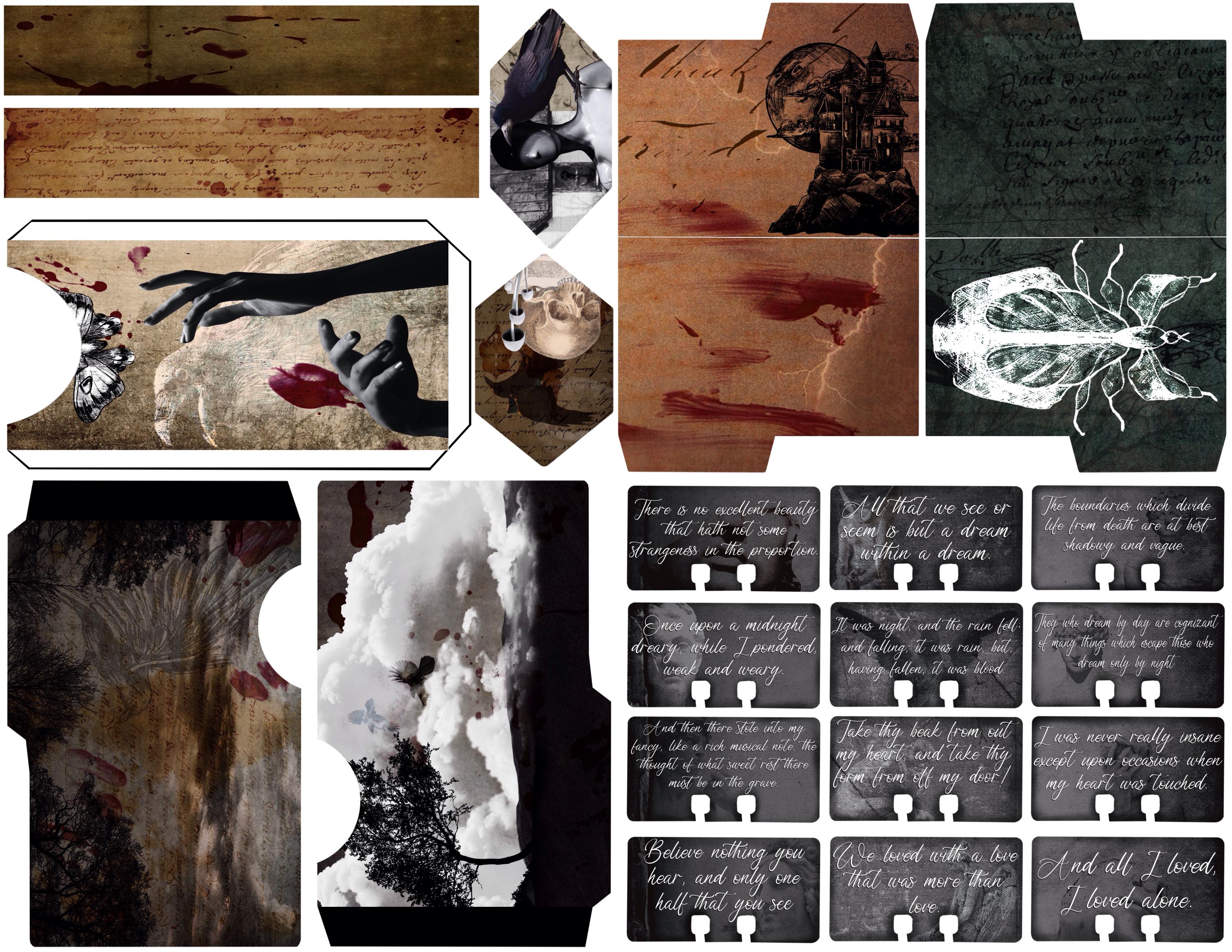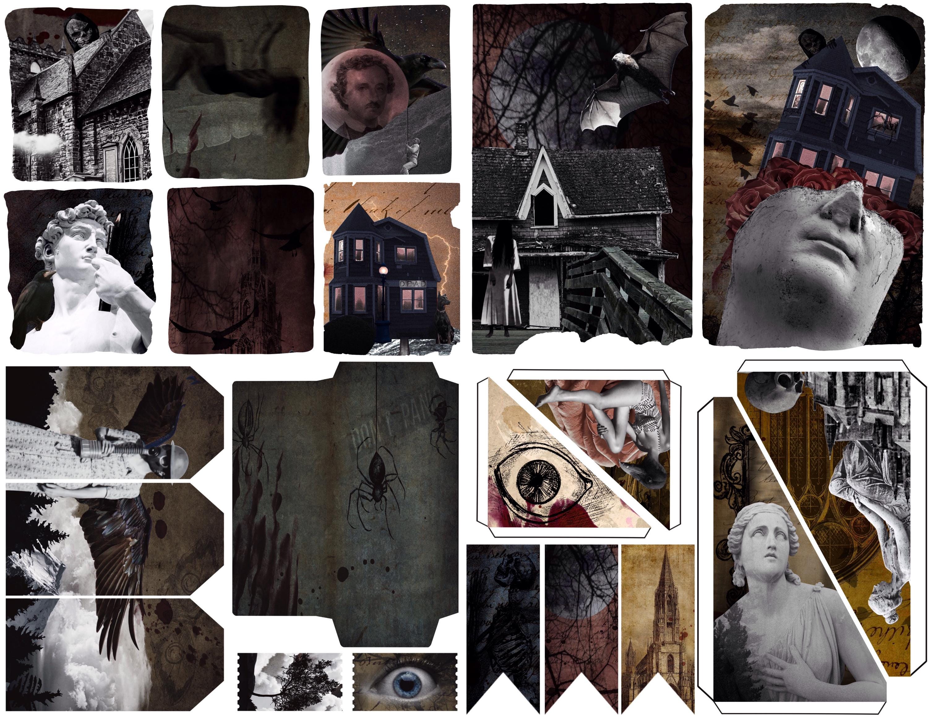 Take a deep dive into the mind od one of the great horror writers, Edgar Allen Poe. Collage and vintage combine to create an atmospheric kit with lots of Easter eggs to Poe’s written works while offering up some original spooky concepts. This listing comes with 20 full page beautifully designed pages. This is a three-part kit due to Etsy's size restrictions.